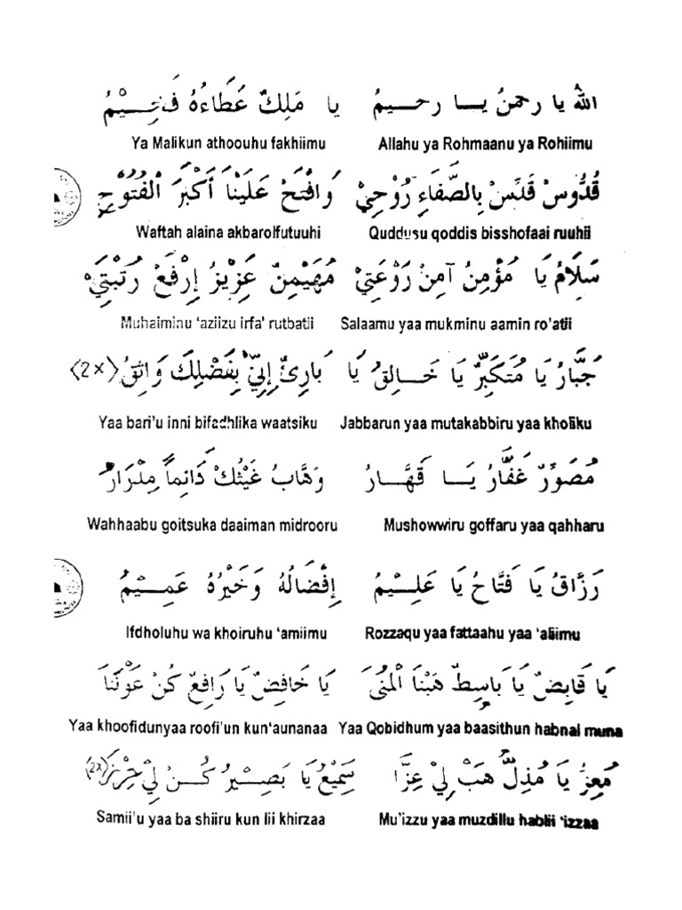Nadlom asmaul husna ini jamak dilakukan sebagai sebuah amalan rutin oleh berbagai kalangan, termasuk oleh siswa madrasah. Nadhom sendiri menurut bahasa mempunyai arti syair atau pantun. Teks nadhom asmaul husna latin arab dan terjemah indonesia yang berjumlah 99 nama asma allah. Kragilan tv al bantani 26 november 2018. With nadhom asmaul husna pelafalah these names of allah become more interesting and easier to memorize.